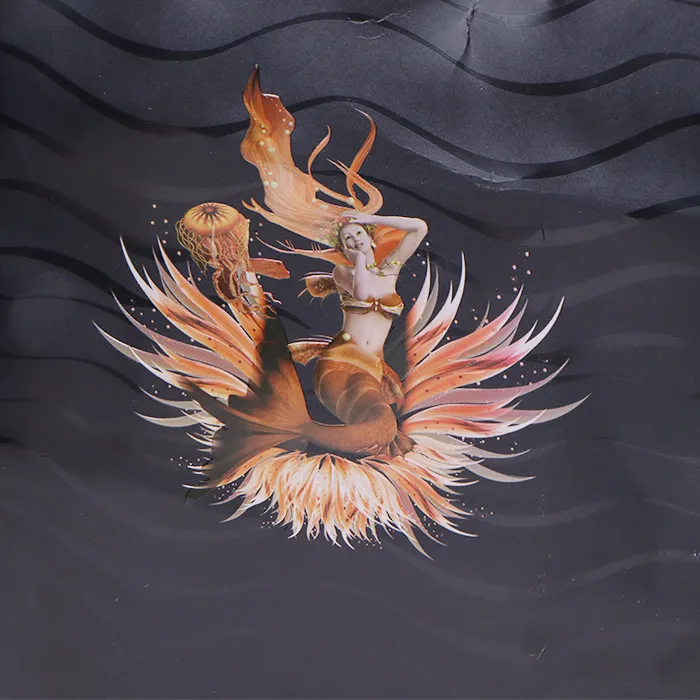 A: Logotipo procesas sujungia spalvotą spausdinimą su įspaudimu. Tai padidina trimatį ir suteikia prabangių pirkinių krepšelių spalvingam raštui ar logotipui sodrumo. Logotipai su sodriomis spalvomis spausdinami siekiant parodyti didelį sodrumą, o tada įspaudimas naudojamas dalinai pakelti popieriaus paviršių, sukuriant trimatį lytėjimo ir vizualinį efektą.